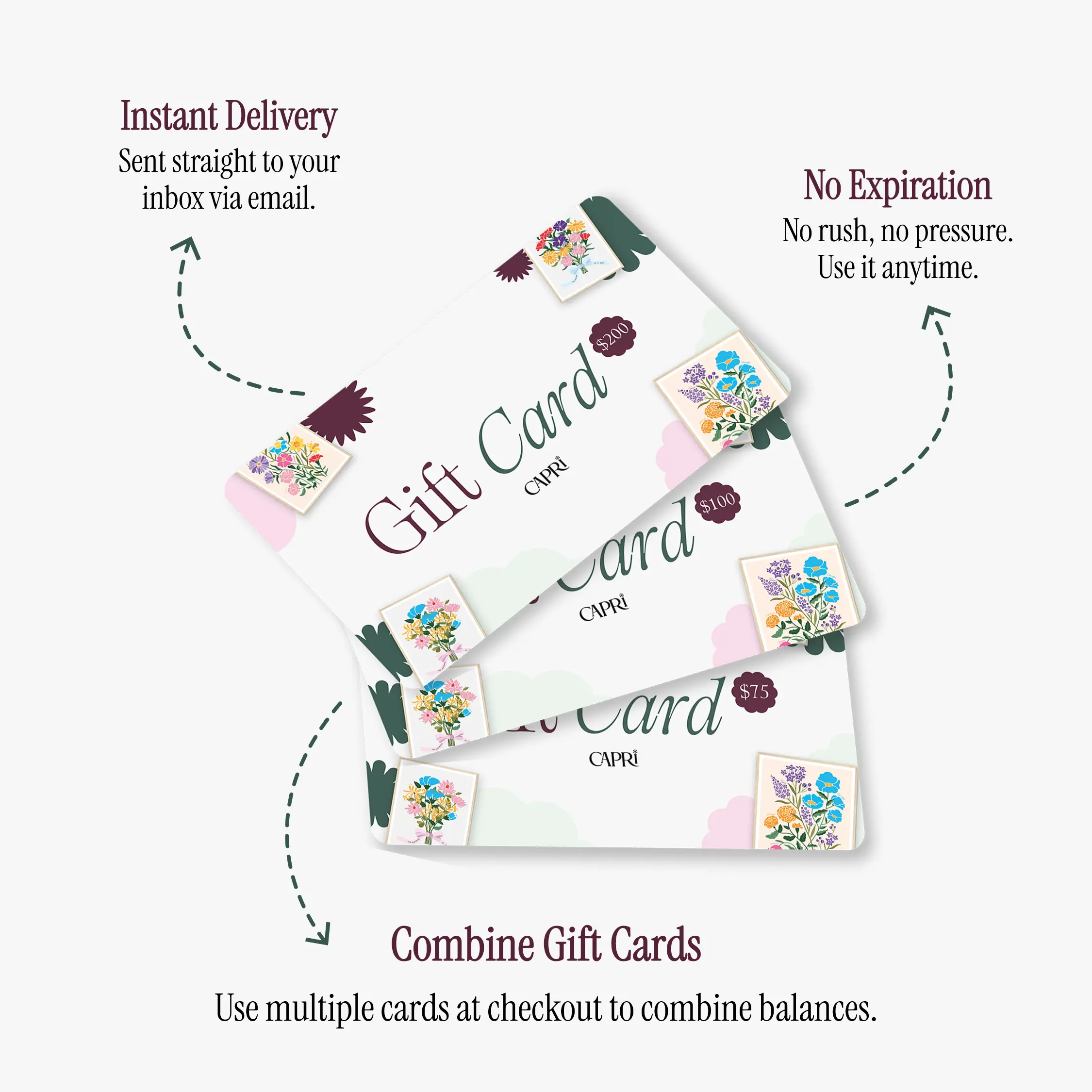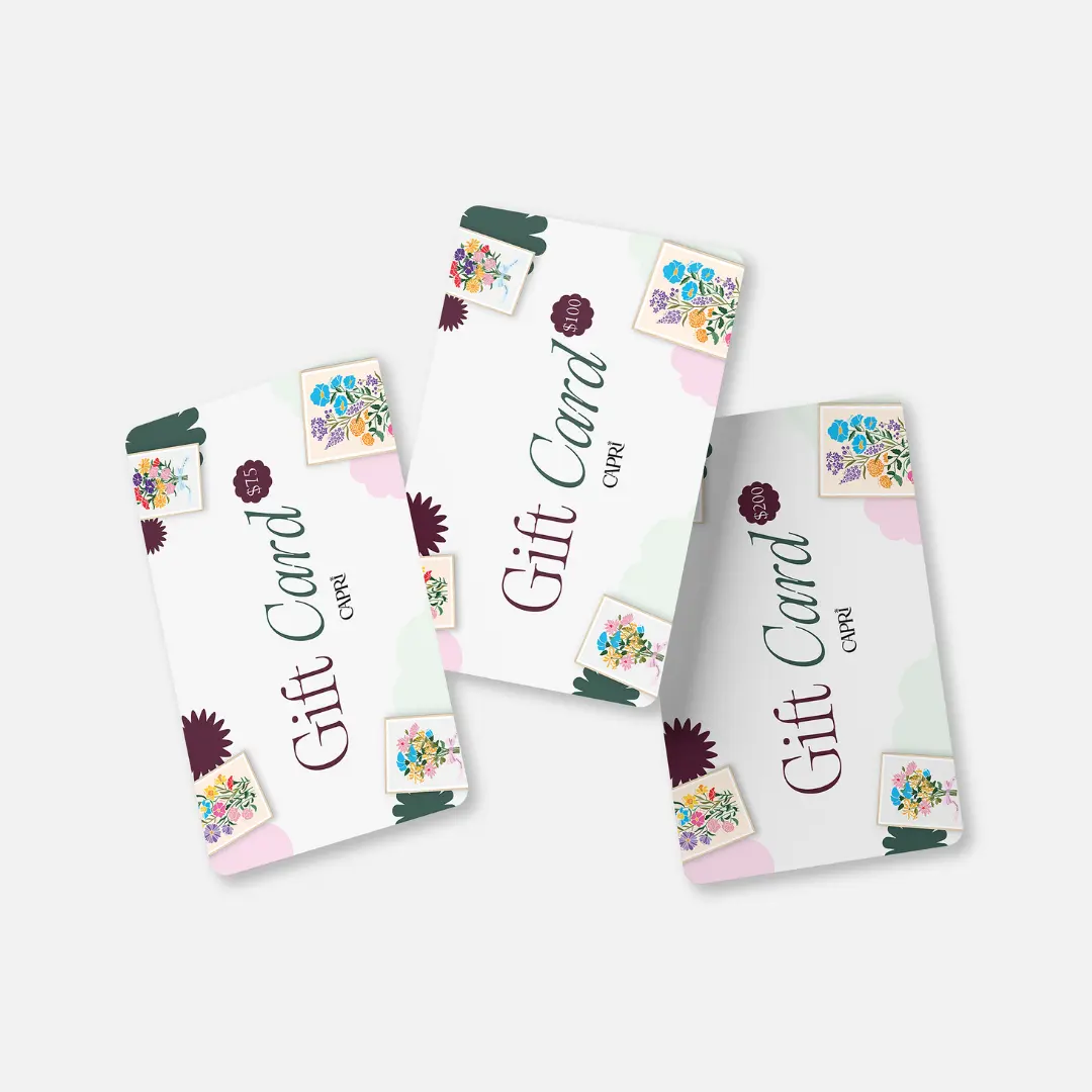 The Capri Studios Gift Card allows your loved ones to choose their own personalized artwork, customized with their preferences and details.